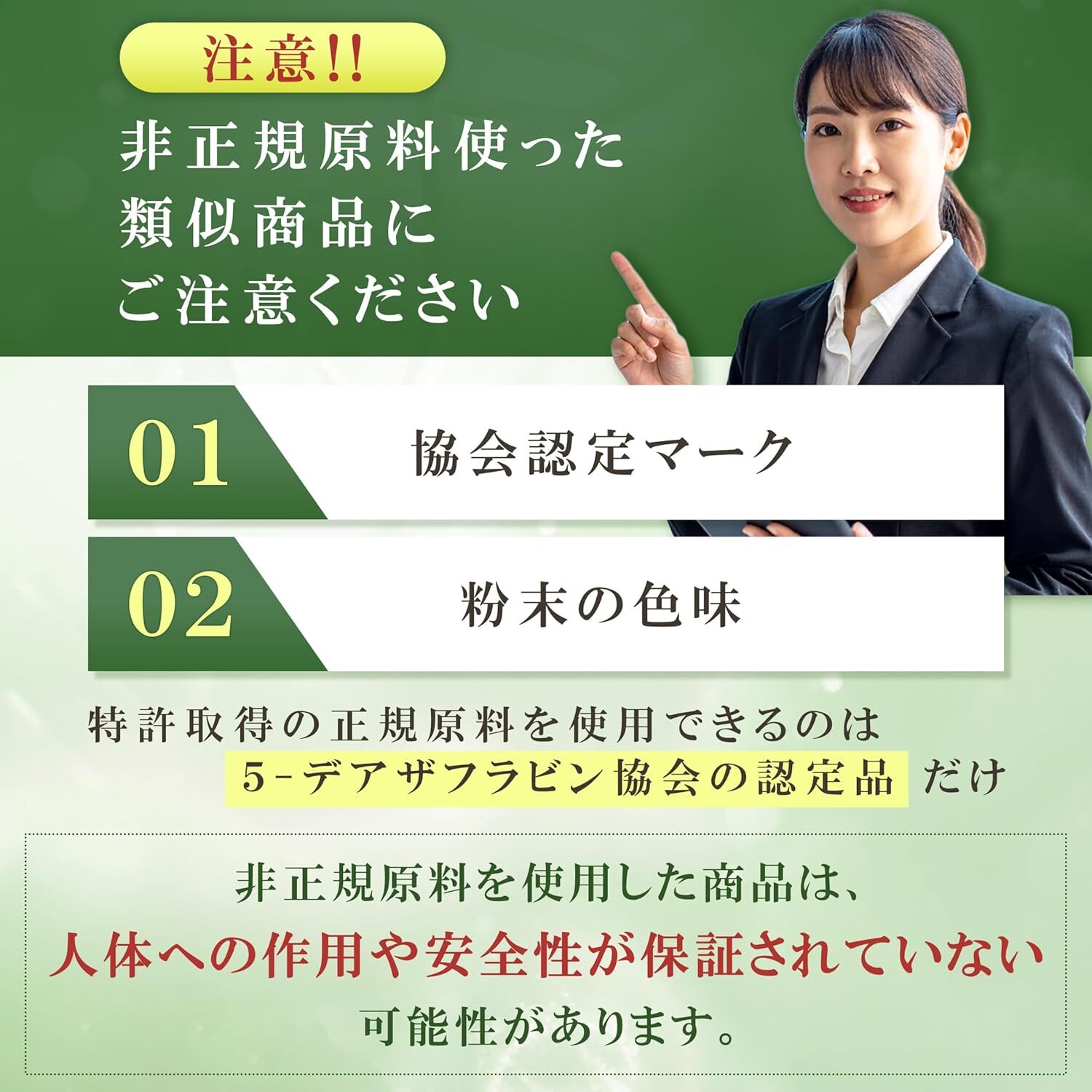 5-デアザフラビン(国内製造)、オリーブ油/結晶セルロース、HPMC、ステアリン酸カルシウム、二酸化ケイ素、着色料(二酸化チタン)、グリセリン脂肪酸エステル、グリセリン