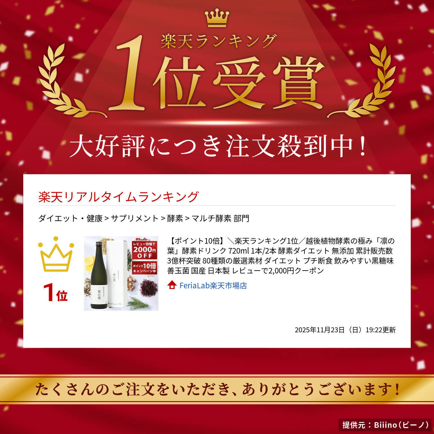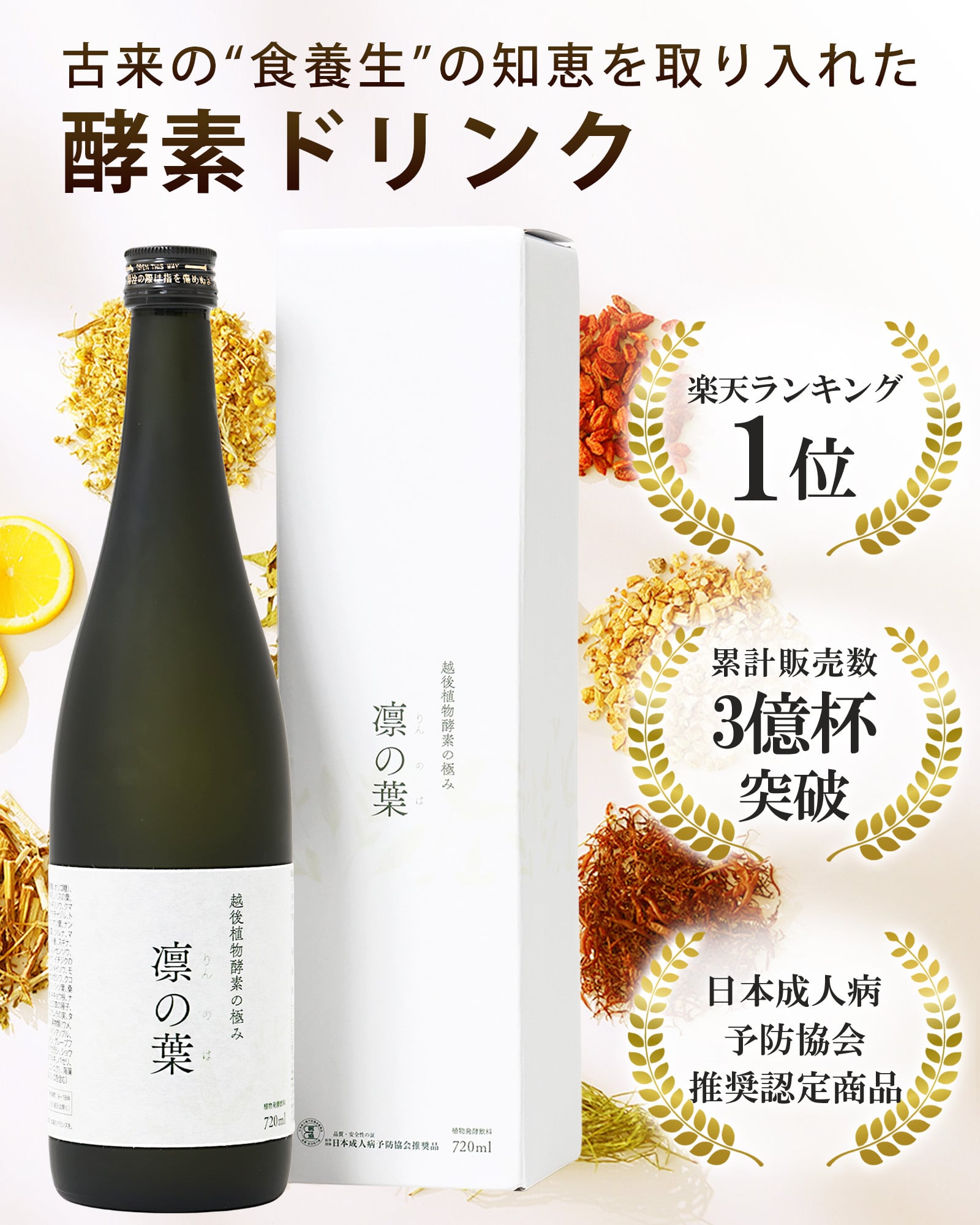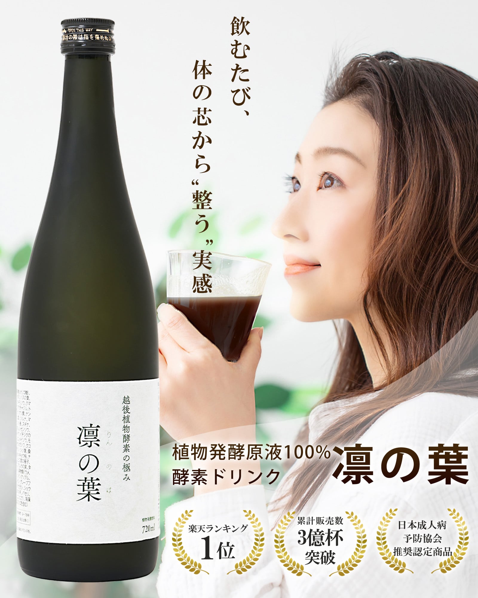 FeriaLab(フェリアラボ)の「越後植物酵素の極み 凛の葉」は、酵素研究47年の成果と新潟薬科大学の共同研究原料を使用した野草発酵酵素ドリンクです。