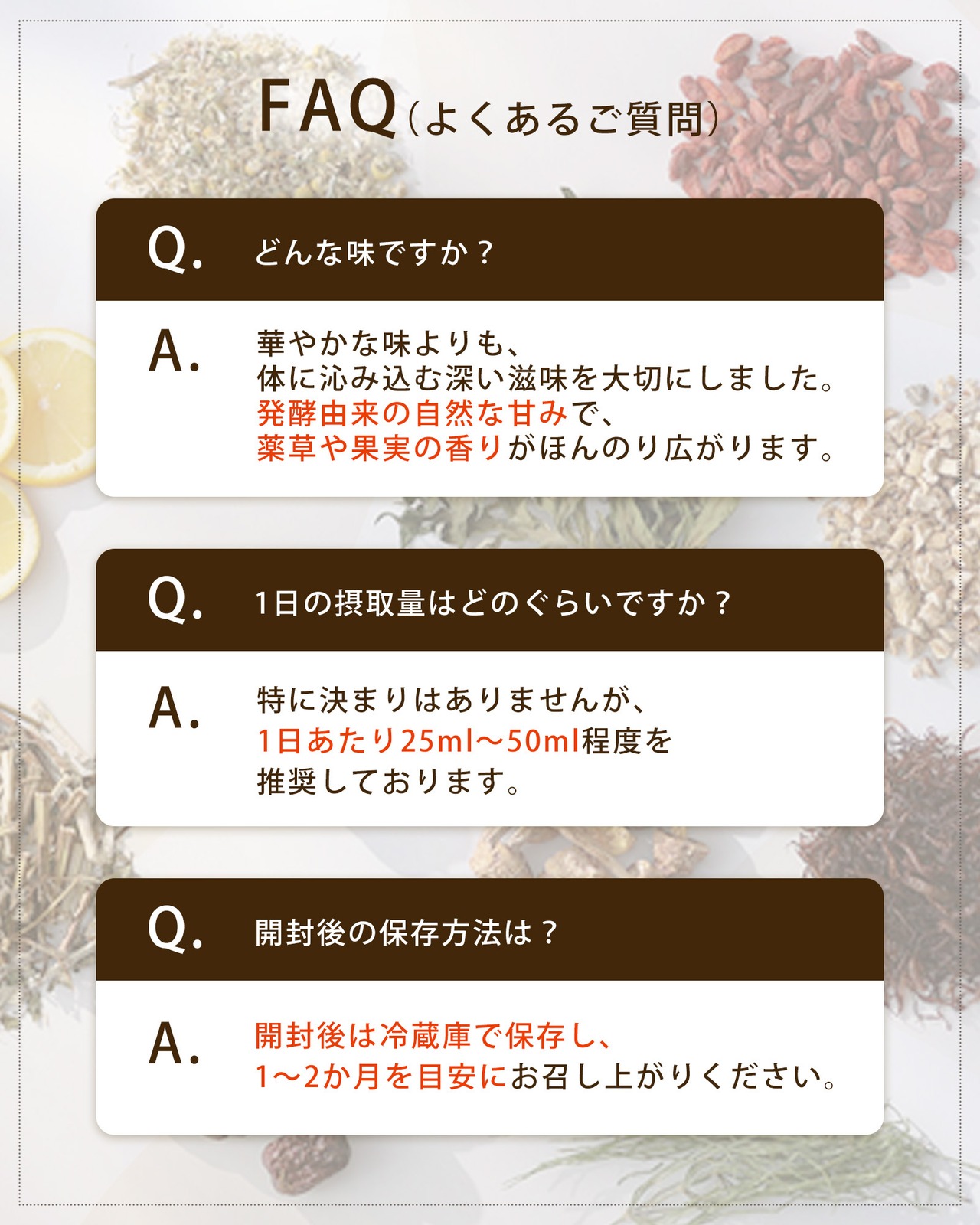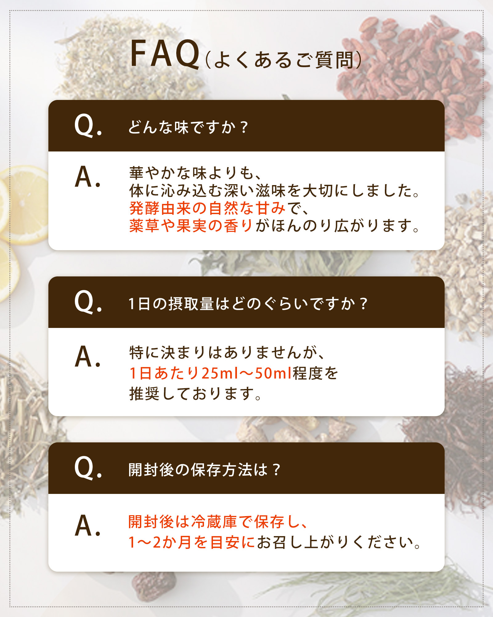 ●植物原料を発酵・熟成させているため、季節により色や風味、粘度にバラツキが生じる場合