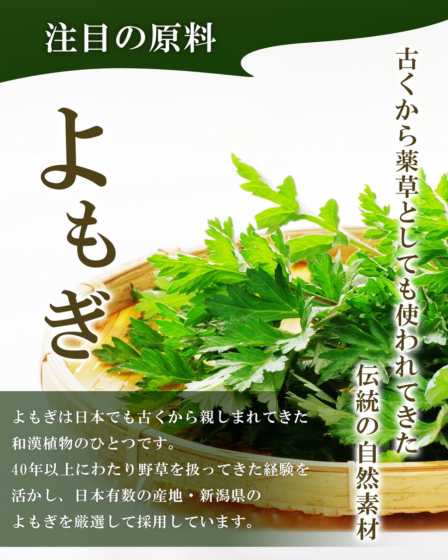 ヨモギ、ウコン、ドクダミ、ハスの葉、高麗人参、センシンレン、