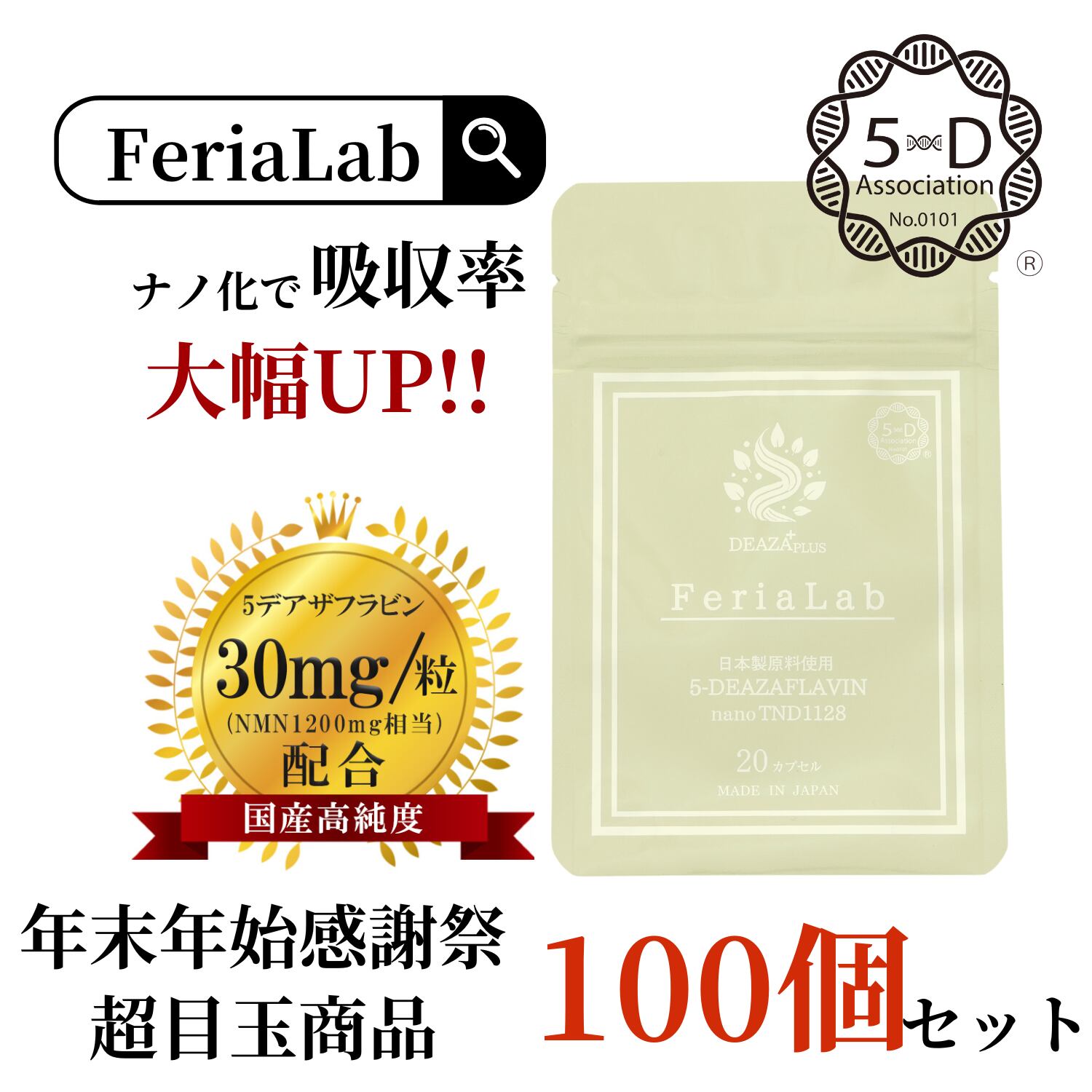 \年末年始感謝祭特別価格/【国内産原料5-デアザフラビン使用】 お得な100個セット FeriaLab 協会正規認定商品 ナノ化 デアザフラビン TND1128 30mg/200粒 ミトコンドリア サプリ 長寿遺伝子 サーチュイン遺伝子 海馬 日本製 フェリアラボ 睡眠 エイジングケア 定期便 40代 50代 60代 70代