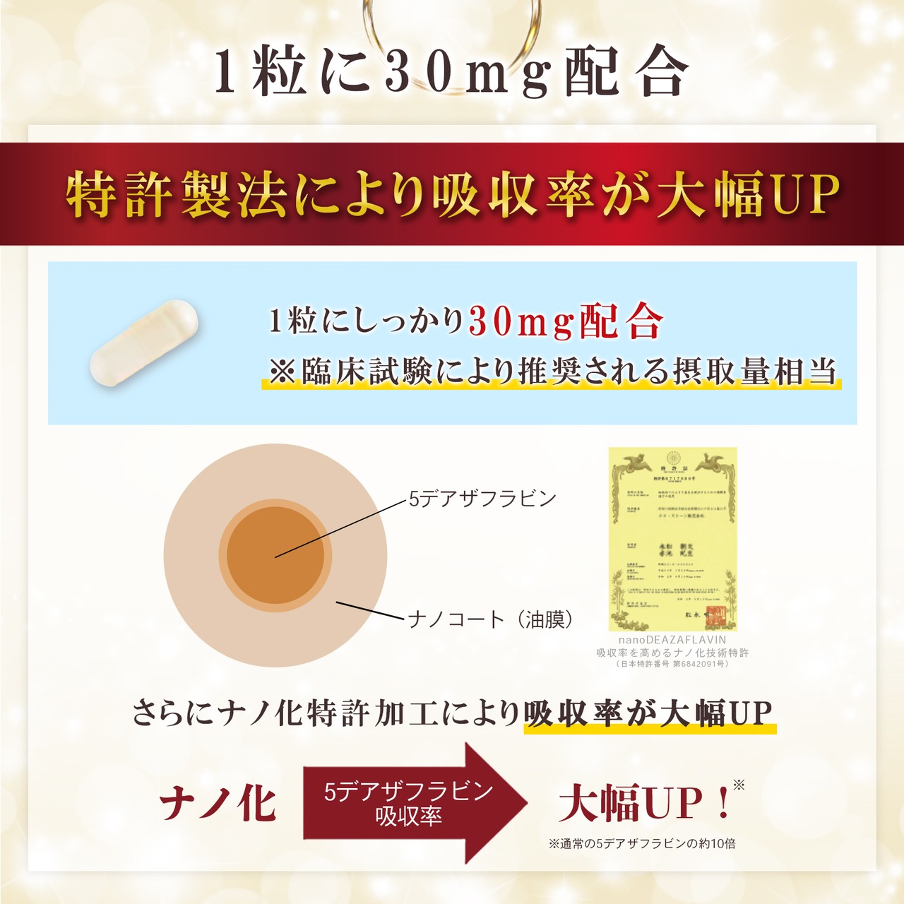 5-デアザフラビン(TND1128)(30mg)を配合した次世代サプリメントです。