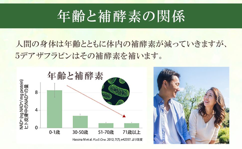 NAD+は加齢とともに減少することが研究で明らかになっています。