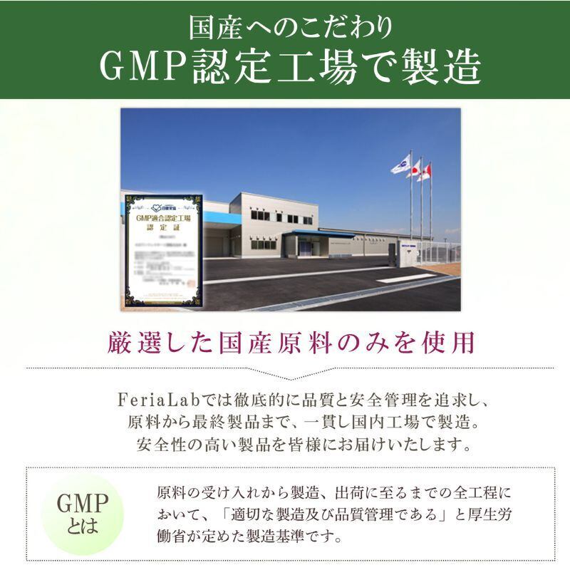 国内GMP認定工場で製造され、動物性原料不使用です。カプセルには植物性皮膜を使用しています。